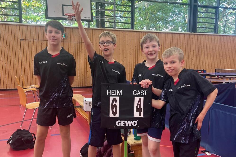 Ebenfalls von den kurzfristigen Ausfällen betroffen spielten mit Valentino, Oscar und Jonathan gleich drei Jungs ihr zweites Spiel des Tages, wobei Oscar und Jonathan erstmals in der Bezirksklasse spielten. Dass die Entwicklung der Jungs aus Trainersicht hervorragend ist, zeigte sich auch in diesem Spiel. Mit 6:4 gewannen die Jungs gegen die Mannschaft aus Eisesheim, wobei Oscar und Jonathan gleich komplett abräumten und ihr Doppel sowie ihre beiden Einzel gewannen. Mit jetzt drei Siegen aus drei Spielen steht auch diese Mannschaft an der Tabellenspitzer ihrer Liga.