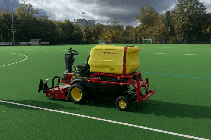 Damit werden die Plätze künftig regelmäßig und gründlich von uns selbst gepflegt. Das Kämmen des Kunstrasens ist entscheidend, um die Spielflächen sauber, gleichmäßig und dauerhaft bespielbar zu halten. So werden nicht nur die Lebensdauer der Plätze verlängert und Verletzungsrisiken reduziert, sondern auch optimale Spielbedingungen für alle Sportlerinnen und Sportler gewährleistet.