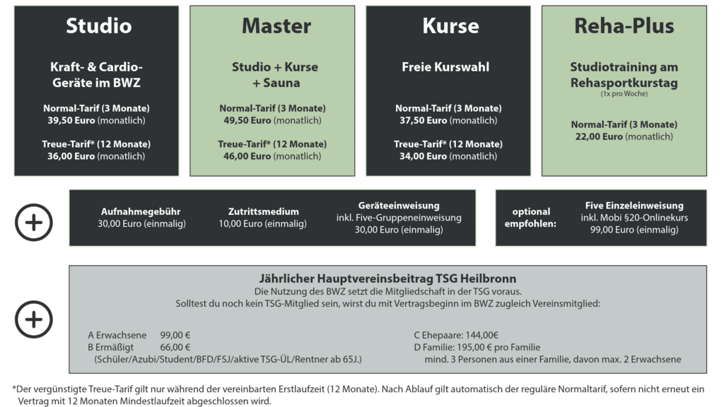 Uns ist es wichtig, dass jedes Mitglied mit Freude unser Studio besucht und nicht jahrelang in einem Vertrag feststeckt, welcher nicht mehr genutzt wird!