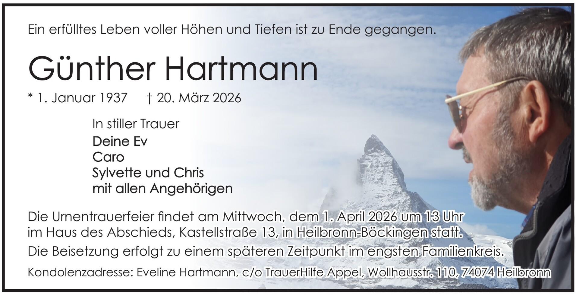 Kondolenzadresse: Eveline Hartmann, c/o TrauerHilfe Appel, Wollhausstr. 110, 74074 Heilbronn