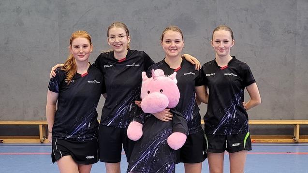 Bei den Mädchen U19 waren wir leider bei der Auslosung vom Pech verfolgt, sodass es im Viertelfinale zum Spiel unserer Mädchen I gegen Mädchen II kam. Unsere zweite Mannschaft in der Aufstellung Felicitas Ficht, Annika Scheuer und Ylvie Scheuer musste sich leider mit 0:4 geschlagen geben. Zu erwähnen ist hier auch das Spieldebüt der siebenjährigen Ylvie, die so manche tollen Ballwechsel für sich gewinnen konnte.