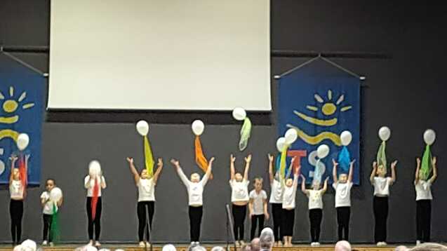 die "bunten Wirbelwinde" der Gymnastikgruppe in Aktion