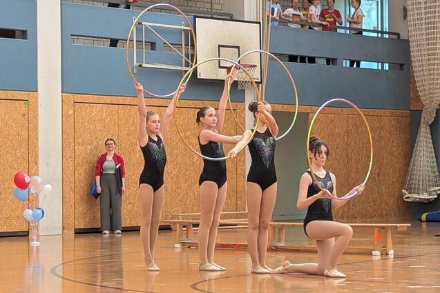 Ebenso überzeugte die Gruppe „Arielle“ das Publikum mit einer technisch anspruchsvollen und zugleich anmutigen Präsentation mit Gymnastikreifen. Die Gymnastinnen erzählten tänzerisch eine fantasievolle Unterwasserweltgeschichte, in der Bewegung und Ausdruckskraft perfekt harmonierten. Auch sie wurden mit der Bewertung „sehr gut“ ausgezeichnet.